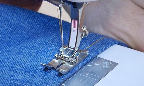 Topstitching uses heavier, contrasting thread to reinforce seams and create the classic denim look.
