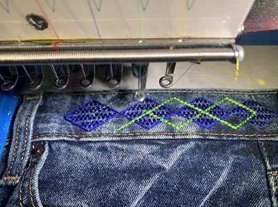 Embroidery machines require specialized needles for denim to handle multiple stitches per second on thick fabric without frequent breakage.